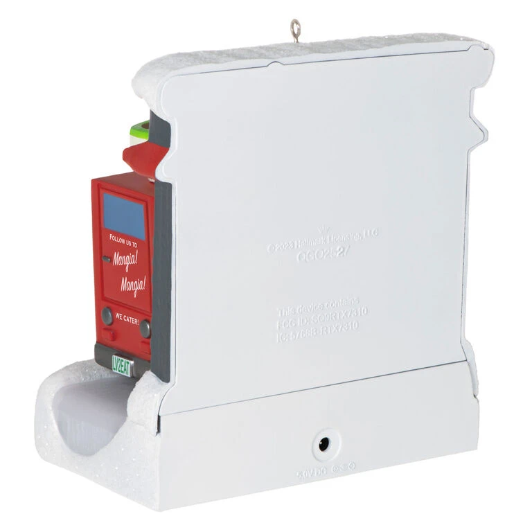 Buon appetito! Tickle your tastebuds and imagine a cozy holiday meal with this Christmas tree ornament featuring a glittery snow scene of an Italian restaurant and a snowman taking the restaurant’s delicious dishes on the road in a food truck. Connect to Hallmark’s Keepsake Power Cord (sold separately) for continuous light, then press the button to hear it play “We Wish You a Merry Christmas.” Connect other Happy Holiday Parade Collection Storyteller ornaments—Joanne’s Christmas Boutique and Anita’s Pet Shop (each sold separately)—to unlock additional amazing interactive performances.