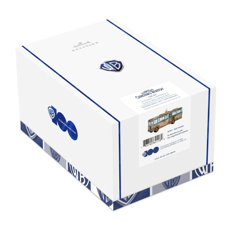 Celebrate 100 years of storytelling from the Warner Bros. Studios with this blown glass Christmas tree ornament from the classic holiday movie “National Lampoon’s Christmas Vacation.” Relive the shenanigans of Clark Griswold’s fun, old-fashioned family Christmas with this design of the RV that the Griswolds’ eccentric relative lives in with his family.